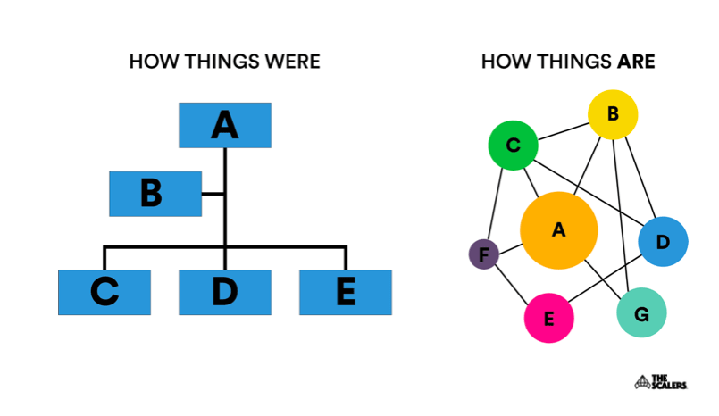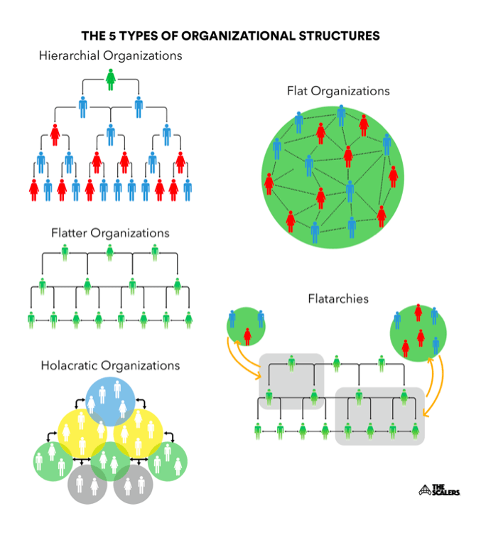 See the graphic below for a visual example of how flatter structures challenge the traditional approach.